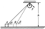 1、简答题 如图所示,用恒力F通过光滑的定滑轮,将静止于水平面上的物体从位置A拉到位置B,物体可视为质点,定滑轮距水平面高为h,物体在位置A、B时,细绳与水平面的夹角分别为α和β,求绳的拉力F对物体做的功.