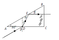 ![]() 参考答案:由图可知,单色光a偏折程度小于b的偏折程度,所以a光的折射率小于b光的折射率.因此可假设a 为红光,b为紫光, 本题解析: 本题难度:简单 3、简答题 如图所示,某透明液体折射率 参考答案:S所发出光束应在竖直方向向左450、向右300共750范围内。 本题解析: 本题难度:简单 4、计算题 (选修3-4).如图所示,一截面为直角三角形的玻璃棱镜ABC, 参考答案:(1) 本题解析:①如图,因为光线垂直 BC 射出,有∠β= 30°。 本题难度:一般 5、选择题 光线以30°的入射角从玻璃中射到玻璃与空气的界面上,它的反射光线与折射光线的夹角为90°,则这块玻璃的折射率为(?) 参考答案:B 本题解析:作出如图所示的光路图. 本题难度:简单 |