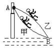 5、选择题 如图所示。游乐场中,从高处A到水面B处有两条长度相同的光滑轨道。甲、乙两小孩沿不同轨道同时从A处自由滑向B处,下列说法正确的有( )