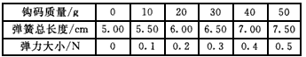 5、实验题 某同学做“探究弹力和弹簧伸长量的关系”的实验,设计了如图(a)所示的实验装置。他先测出不挂钩码时弹簧的自然长度,然后在弹簧下端依次挂1、2、3、4、5个钩码,待静止时,测出弹簧相应的总长度。每个钩码的质量都是10 g。实验数据见下表。(弹簧伸长始终未超过弹性限度,g取10 N/kg)