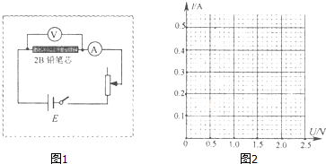 (3)根据表格中数据在坐标纸上(图2)画出铅笔芯的I-U图线.