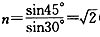 本题解析:当入射角为45°时,可由折射定律算出其折射角为30°,故反射光线与折射光线间的夹角为180°-45°-30°=105°.