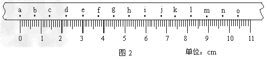 ③经过一段时间,停止转动和打点,取下纸带,进行测量。如图2所示,该同学在纸带上打的点上方标上了字母a、b、c、d…。