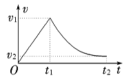 2、选择题 在军事演习中,某空降兵从飞机上跳下,先做自由落体运动,在t1时刻,速度达最大值v1时打开降落伞,做减速运动,在t2时刻以较小速度v2着地.他的速度图象如图所示.下列关于该空降兵在0~t1或t1~t2时间内的平均速度
