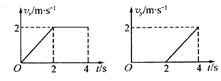 4、选择题 在光滑水平面内建立平面直角坐标系xoy,一质点从t=0时刻起,由坐标原点O(0,0)开始运动,其沿x轴和y轴方向运动的速度–时间图像如图所示,下列说法正确的是(? )
