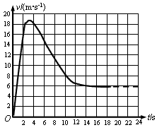 2、计算题 总质量为80kg的跳伞运动员从离地500m的直升机上跳下,经过2s拉开绳索开启降落伞,如图所示是跳伞过程中的v-t图,试根据图象求:(g取10m/s2)