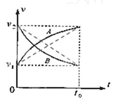 4、选择题 从同一地点同时沿同一方向做直线运动的两个物体A、B的速度时间图象如图实线所示。在0-t0时间内,下列说法中错误的是(?)