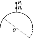 1、填空题 (1)某同学用大头针、三角板、量角器等器材测半圆形玻璃砖的折射率.开始玻璃砖的位置如右图中实线所示,使大头针P1、P2与圆心O在同一直线上,该直线垂直于玻璃砖的直径边,然后使玻璃砖绕圆心O缓慢转动,同时在玻璃砖的直径边一侧观察P1、P2的像,且P2的像挡住P1的像.如此观察,当观察到玻璃砖转到右图中虚线位置时,上述现象恰好消失.此时只需测量出?,即可计算出玻璃砖的折射率.请用你的测量量表示出折射率n= ?.