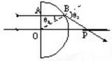 ![]() 参考答案:两个介质是一样的,第一次是空气到介质,垂直于界面不会折射,第二次是从介质到空气,发生折射,方向改变,第三次是又从空气到介质,发生折射,方向再变回来,第四次和第一次折射对应,他们的折射率都是一样的,最后方向还是一致的,即4、5、6(彼此平行)中的任一条都有可能. 本题解析: 本题难度:简单 4、选择题 如图所示,a、b两种单色光平行地射到平行板玻璃,经玻璃后射出的光线分别为a′、b′,两者间距变窄。下列说法正确的是 参考答案:C 本题解析:由光路图可得出结论:折射率越大,侧移量越大,所以b光的折射率大,A错;b光频率大,波长短,由v=c/n,可知b在玻璃中的传播速度比光线a小,B错; 本题难度:简单 5、计算题 (9分)在桌面上有一倒立的玻璃圆锥,其顶点恰好与桌面接触,圆锥的轴(图中虚线)与桌面垂直,过轴线的截面为等边三角形,如图所示。有一半径为r的圆柱形平行光束垂直入射到圆锥的底面上,光束的中心轴与圆锥的轴重合。已知玻璃的折射率为1.5,求光束在桌面上形成光斑的面积。 参考答案:4πr2 本题解析:如图所示,设玻璃圆锥与桌面的交点为A,右侧边缘的光束垂直射入圆锥后交三角形于O点,入射角为α,则有 本题难度:一般 |