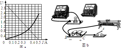(2)根据图a,在图b中把缺少的导线补全,连接成实验的电路(其中电流表和电压表分别测量小灯泡的电流和电压);