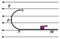 ![]() 参考答案:A、甲、乙两人共同绕地轴随地球一起做匀速圆周运动,他们的角速度相同,但半径不同,甲的半径为R地,乙的半径为R地cos45°,那么由公式v=ωr知他们的线速度不同,故选项A错误. 本题解析: 本题难度:一般 4、计算题  如图所示,在E=103V/m的水平向左匀强电场中,有一光滑半圆形绝缘轨道竖直放置,轨道与一水平绝缘轨道MN连接,半圆轨道所在竖直平面与电场线平行,其半径R=40cm,一带正电荷q=10-4 C的小滑块质量为m=40g,与水平轨道间的动摩因数μ=0.2,取g=10m/s2,求:  参考答案:解:(1)滑块刚能通过轨道最高点条件是 本题解析: 本题难度:困难 5、选择题  如图所示,AB为半径为R的薄金属导轨,导轨处于竖直平面内,a、b分别为沿轨道上、下表面做圆周运动的小球,要使小球不致在最高点脱离轨道,a、b在轨道最高点的速度va、vb应满足的条件是?