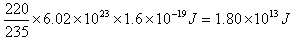 3、计算题 每昼夜消耗200 g铀235的原子能发电站,如果效率为25%,它能产生的电功率是多大?(每个铀核裂变时放出的能量是220 MeV)