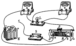 4、实验题 在探究小灯泡的伏安特性实验中,所用器材有:灯泡L、量程恰当的电流表A和电压表V、直流电源E、滑动变阻器R、电键S等,要求灯泡两端电压从0V开始变化。