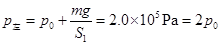 5、简答题 圆筒形气缸躺放在水平地面上,气缸质量M=8kg。它与地面间摩擦系数μ=0.1。最大静摩擦力=10N。气缸内壁光滑,横截面积S=2.5