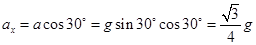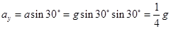 末速度沿斜面向下,把运动分解为水平和竖直方向如图