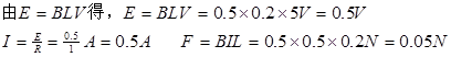 ,金属棒ab可沿导轨滑动,匀强磁场的磁感应强度为B="0.5T," ab在外力作用下以V=5m/s的速度向右匀速滑动,求金属棒所受安培力的大小。