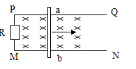 4、计算题  如图所示,金属导轨MN、PQ之间的距离L=0.2m,导轨左端所接的电阻R=1 ,金属棒ab可沿导轨滑动,匀强磁场的磁感应强度为B="0.5T," ab在外力作用下以V=5m/s的速度向右匀速滑动,求金属棒所受安培力的大小。
