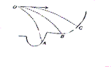 2、选择题 在同一平台上的O点抛出的3个物体,做平抛运动的轨迹均在纸面内,如右图所示,则3个物体做平抛运动的初速度VA、VB、VC的关系分别是( ?)