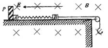 的电荷量,两物块由绝缘的轻弹簧相连,一不可伸长的轻绳跨过定滑轮,一端与物块B连接,另一端连接轻质小钩。整个装置处于正交的场强大小为E、方向水平向左的匀强电场和磁感应强度大小为B 、方向水平向里的匀强磁场中。物块A、B 开始时均静止,已知弹簧的劲度系数为K,不计一切摩擦及AB间的库仑力,物块A、B所带的电荷量不变,B不会碰到滑轮,物块A、B均不离开水平桌面。若在小钩上挂一质量为M的物块C并由静止释放,可使物块A对挡板P的压力为零,但不会离开P,则