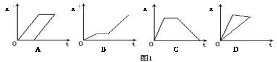 3、选择题 某同学匀速向前走了一段路后,停了一会儿,然后沿原路匀速返回出发点,图1中能反映此同学运动情况的x-t图线应是 (? )