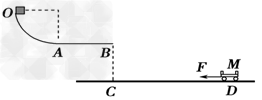 2、计算题 如图所示,四分之一圆轨道OA与水平轨道AB相切,它们与另一水平轨道CD在同一竖直面内,C点在B点的正下方,C、D两点间的距离为X=8m;圆轨道OA的半径R=0.2 m,OA与AB均光滑,一质量m=1 kg的滑块从O点由静止释放,当滑块经过B点时,一小车由D点以初速度v0=3m/s向C点做匀减速运动直到静止,加速度大小a=1 m/s2,运动一段时间后滑块恰好落入小车中.(取g=10 m/s2)求: