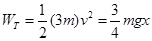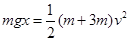 3、填空题 如图所示,不计一切阻力,定滑轮质量忽略不计,A的质量为m,B的质量为3m,两物体由静止开始运动,当B向右移动x时,A的速度大小为___________,绳子的拉力对B做功为___________。