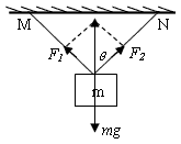 参考答案:ABC 本题解析:力F必须是以两分力为邻边的平行四边形的对角线或者与两分力在一条直线上。因此两分力在一条直线上一定与力F也是同直线,即不能都与F垂直。故ABC正确; 本题难度:一般 3、计算题 如图所示,重力为500 N的人通过跨过定滑轮的轻绳牵引重200 N的物体,当绳与水平面成60°角时,物体静止。不计滑轮与绳的摩擦。求地面对人的支持力和摩擦力。 参考答案:解:人和重物静止,所受合力皆为零,对物体进行受力分析得到,绳的拉力F等于物重200 N 本题解析: 本题难度:一般 4、计算题 两根长度相等的轻绳,下端挂着质量为m的物体,上端分别固定在水平天花板上的MN两点,MN两点间的距离为s,如图所示,已知两绳所能承受的最大拉力均为T,则每根绳的长度不得短于多少?