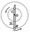 3、选择题 如图所示,轻杆长为3L,在杆的A.B两端分别固定质量均为m的球A和球B,杆上距球A为L处的点O装在光滑的水平转动轴上,外界给予系统一定的能量后,杆和球在竖直面内转动.在转动的