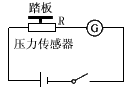 1、选择题 有一种测量人体重的电子秤,其原理图如图所示,它主要由三部分构成:踏板、压力传感器R(是一个阻值可随压力大小而变化的电阻器)、显示体重的仪表