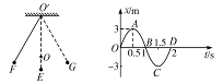 4、实验题 如图11-4-10所示为一单摆及其振动图象,由图回答,当在悬点正下方O处有一光滑水平细钉可挡住摆线,且