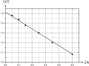 | 电压(U/V) | 1.48 | 1.44 | 1.38 | 1.30 | 1.20 | 1.08 电流(I/A) 0.05 0.10 0.15 0.25 0.35 0.50