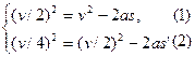 本题解析:物体做匀减速直线运动,a恒定,第一段运动已知v0、vt、s.第二段运动已知v0、vt、s求s′.选择包括v0、vt、s、a的公式vt2=v02+2as求解.注意物体做匀减速直线运动,加速度方向与v0相反取负值,列出方程: