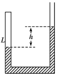 3、计算题 如图所示,一端封闭、粗细均匀的U形玻璃管竖直放置,在标准大气压(一个标准大气压相当于760 mm高水银柱产生的压强)下,温度t1=39℃时,管内水银封闭着L1=8 cm长的空气柱,管内两侧水银面高度差h=2 cm。现给气柱加热,使气柱长度为L2=9 cm,求此时气柱的温度为多少摄氏度?