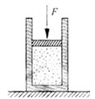 1、选择题 如图所示,一定质量的理想气体密封在绝热(即与外界不发生热交换)气缸(含活塞)中。今对活塞施以一竖直向下的压力F,使活塞缓慢向下移动一段距离。则被密封的气体