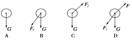 ![]() 参考答案:当挂一个小球时,根据胡克定律,有:mg=k?△x=kL; 本题解析: 本题难度:一般 4、选择题 两固定长杆上分别套A、B两圆环,两环上分别用轻质细线悬吊着两物体C、D,如图所示,当环沿长杆向下滑动时,物体与环保持相对静止,图甲中细线始终与杆垂直,图乙中细线始终在竖直方向上,则 参考答案:B 本题解析: 本题难度:一般 5、选择题 足球运动员已将足球踢向空中,如右图所示,下列描述足球在向斜上方飞行过程中某时刻的受力图中,正确的是(G为重力,F为脚对球的作用力,Ff为空气阻力)( ) 参考答案:B 本题解析:物体一定受向下的重力;脚对球已经没有力,因为脚并没有碰到球;空气对球的阻力不能忽略,方向与球相对空气的运动方向相反;空气对足球的浮力很小,忽略不计;因而球只受重力和空气阻力; 本题难度:一般 |