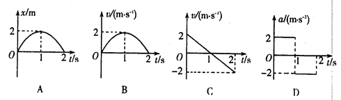 4、选择题 下列图象能正确反映物体在直线上运动,经2s又回到初始位置的是(?)