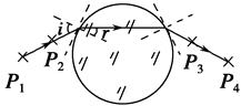 ![]() 参考答案:A、c光的偏折程度最大,则c光的折射率最大,则频率最大,根据E=hv,知c光的光子能量最大,a光的光子能量最小.故A错误,B正确. 本题解析: 本题难度:简单 3、实验题 某同学用圆柱形玻璃砖做测定玻璃折射率的实验,先在白纸上放好圆柱形玻璃砖,在玻璃砖的一侧插上两枚大头针P1和P2,然后在圆柱形玻璃砖另一侧观察,调整视线使P1的像被P2的像挡住,接着在眼睛所在一侧相继又插上两枚大头针P3、P4,使P3挡住P1、P2的像,使P4挡住P3和P1、P2的像,在纸上标出大头针位置和圆柱形玻璃砖的边界如图所示. 参考答案:(1)见解析 (2)入射角i和折射角r?(3) 本题解析:(1)连接P1、P2并与玻璃砖相交,得到入射光线,再连接P3、P4并与玻璃砖相交,得到射出玻璃砖的光线,连接这两个交点得到光线在玻璃砖内的折射光线,如图所示. 本题难度:一般 4、实验题 在双缝干涉实验中,屏上一点P到双缝的路程差是2.6× 参考答案:1.73× 本题解析:本题考查双缝干涉.由题意知 本题难度:简单 5、填空题 把双缝干涉实验装置放在折射率为n的水中,两缝间距离为d,双缝到屏的距离为 D(D>>d),所用单色光在真空中的波长为λ,则屏上干涉条纹中相邻的明纹间的距离为_________ 参考答案:λD/(nd) 本题解析:光在水中的波长为: 本题难度:一般 |