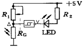 4、选择题 如图所示的光控电路用发光二极管理LED模仿路灯,RG为光敏电阻,“ 5、填空题 如图所示,是为汽车发动机的冷却风扇设计的一个控制电路,点火开关闭合时,输入端B为高电压;并且仅当温度过高时,热敏电阻的阻值就较小,输入端A也为高电压,那么继电器通电,磁性开关合上,冷却风扇工作.在图示虚线框内接入的门电路应是______.若要使冷却风扇容易起动,则应______(选填“增大”或“减小”)可变电阻 |