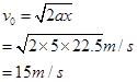 2、计算题 通过测试得知某型号的卡车在某中路面上急刹车时加速度的大小是5m/s2。如果要求它在这种路面上行驶时在22.5m内必须停下,它的行驶速度不能超过多少大?