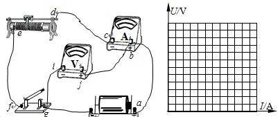 F.学生电源(直流6V),开关一个,导线若干? ①实验中所用电压表应选用_________,电流表应选_________ (用字母表示). ②为使实验误差尽量小,要求电压从零开始多取几组数据,请在方框内补充完整该实验的电路图 参考答案:①A(2分)? D(2分)? ②分压器接法(1分)?电流表外接(1分) 本题解析:略 本题难度:简单 2、实验题 某同学用如图所示电路来测定电池的电动势和内阻。