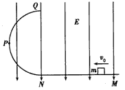 5、计算题 如图所示,在E=1×103 V/m的竖直匀强电场中,有一光滑的半圆形绝缘轨道QPN与一水平绝缘轨道MN连接,半圆形轨道平面与电场线平行,P为QN圆弧的中点,其半径R=40 cm,一带正电q=10-4 C的小滑块质量m=10 g,与水平轨道间的动摩擦因数μ=0.15,位于N点右侧1.5 m处,取g=10 m/s2,求: