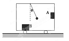 4、选择题 如图,小车沿水平面运动时木块A、B与小球始终和小车保持相对静止,细线偏离竖直方向的角度为θ,木块A的质量为m ,重力加速度为g ,木块B和小球的质量均为未知,则以下不能求出的物理量是