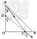 有一腰长是16cm的等腰直角三棱镜,为了测定它的折射率,先把三棱镜的一个端面放在铺好白纸的桌面上,用铅笔画出它的轮廓线AOB,如图所示.从OB上的C点观察A棱,由插针法确定射入眼中光线的反向延长线交AO于D,测得OC=12 cm,OD=9 cm,求此三棱镜的折射率.