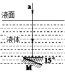 3、计算题 如图所示,M是一块平面镜,位于透明液体之中,镜面水平向上放置,一细束光线a竖直向下射来,穿过液体射到平面镜上,现将平面镜绕水平轴在竖直面内顺时针转动