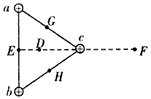 1、选择题 在光滑的绝缘水平面上,有一个正三角形abc,顶点a、b、c处分别固定一个正点电荷,电荷量相等,如图所示,D点为正三角形外接圆的圆心,E、G、H点分别为ab、ac、bc的中点,F点为E点关于电荷c的对称点,则下列说法中正确的是