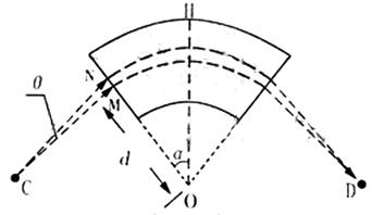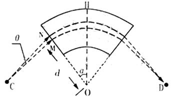 2、简答题 如图为一种质谱仪工作原理示意图.在以O为圆心,OH为对称轴,夹角为2α的扇形区域内分布着方向垂直于纸面的匀强磁场.对称于OH轴的C和D分别是离子发射点和收集点.CM垂直磁场左边界于M,且OM=d.现有一正离子束以小发散角(纸面内)从C射出,这些离子在CM方向上的分速度均为v0.若该离子束中比荷为