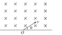 2、选择题 如图所示,在垂直纸面向里的匀强磁场边界,有两个质量、电荷量均相等的正、负离子(不计重力),从O点以相同的速度射入磁场中,射入方向均与边界成θ角,则正、负离子在磁场运动过程中,下列判断错误的是(? )