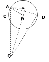 4、选择题 如图所示,一半径为R的圆内有垂直纸面的匀强磁场,磁感应强度为B,CD是该圆一直径。一质量m、电荷量q的带电粒子(不计重力),自A点沿平行CD的方向垂直射入磁场中,恰好从D点飞出磁场,A点到CD的距离为