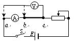 本题解析:(1)螺旋测微器读数第一部分是固定刻度读出0.5mm的整数倍,观察图可得为0.5 mm,可动刻度与固定刻度对齐的刻度线接近2,估读一位位1.8,乘以精确度0.01mm,读数为 。 (2)欧姆档的读数为指针刻度乘以倍率即 (3)待测电阻为3欧姆左右,电源电动势为4V,电压表两个量程选择3v量程,而不选择15v,那样指针偏转角度太小,读数不准确。而且金属丝电流不易过大,所以电压表量程选择小量程A,电流表也选择小量程即C,滑动变阻器要与金属丝串联分压,所以滑动变阻器要和金属丝电阻相当,不易相差太多,排除F选择E。 (4)电流表的内接外接根据“大内偏大小外偏小”判断,由于待测电阻 ,所以电流表选择外接,因此电压表接在b点。 考点:测金属丝电阻实验探究