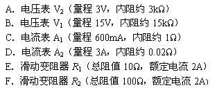参考答案:(1)B, A表量程太大,读数误差太大 (2)A, B变阻器额定电流太小,阻值太大调节不方便